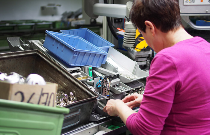 入社間もない人は、OEM用の企業用の大量発注の南京錠のアッセンブルから開始して、そこで作業を覚えていく。