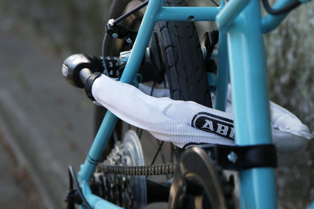 高強度チェーンで作られたロックで、カラフルな切断防止も兼ねた保護カバーが特徴。