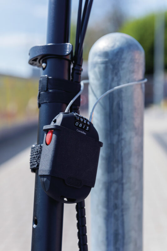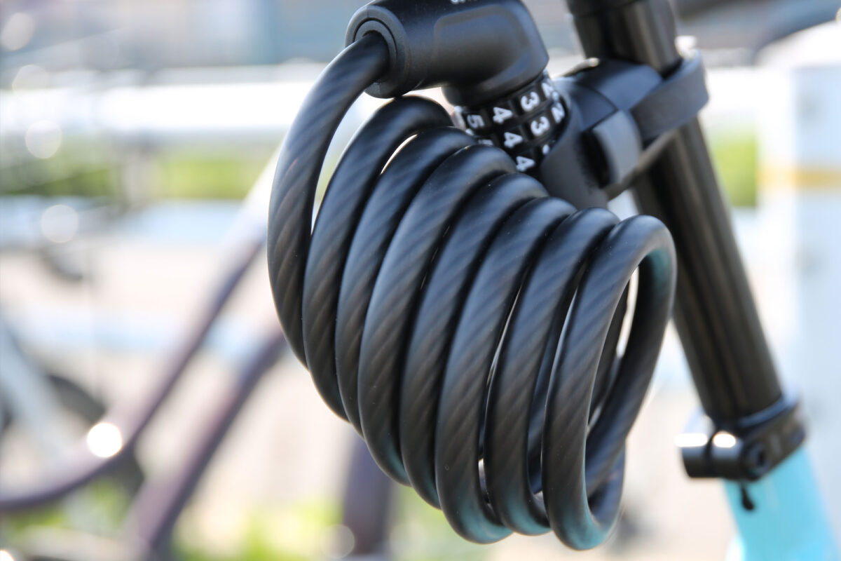 日本では昔から定番のケーブルを使用したロック。軽く、コイル形状のものは持ち運びやすいですが、切断されやすいのが弱点。サブロックや安全性の高い場所での駐輪などに。