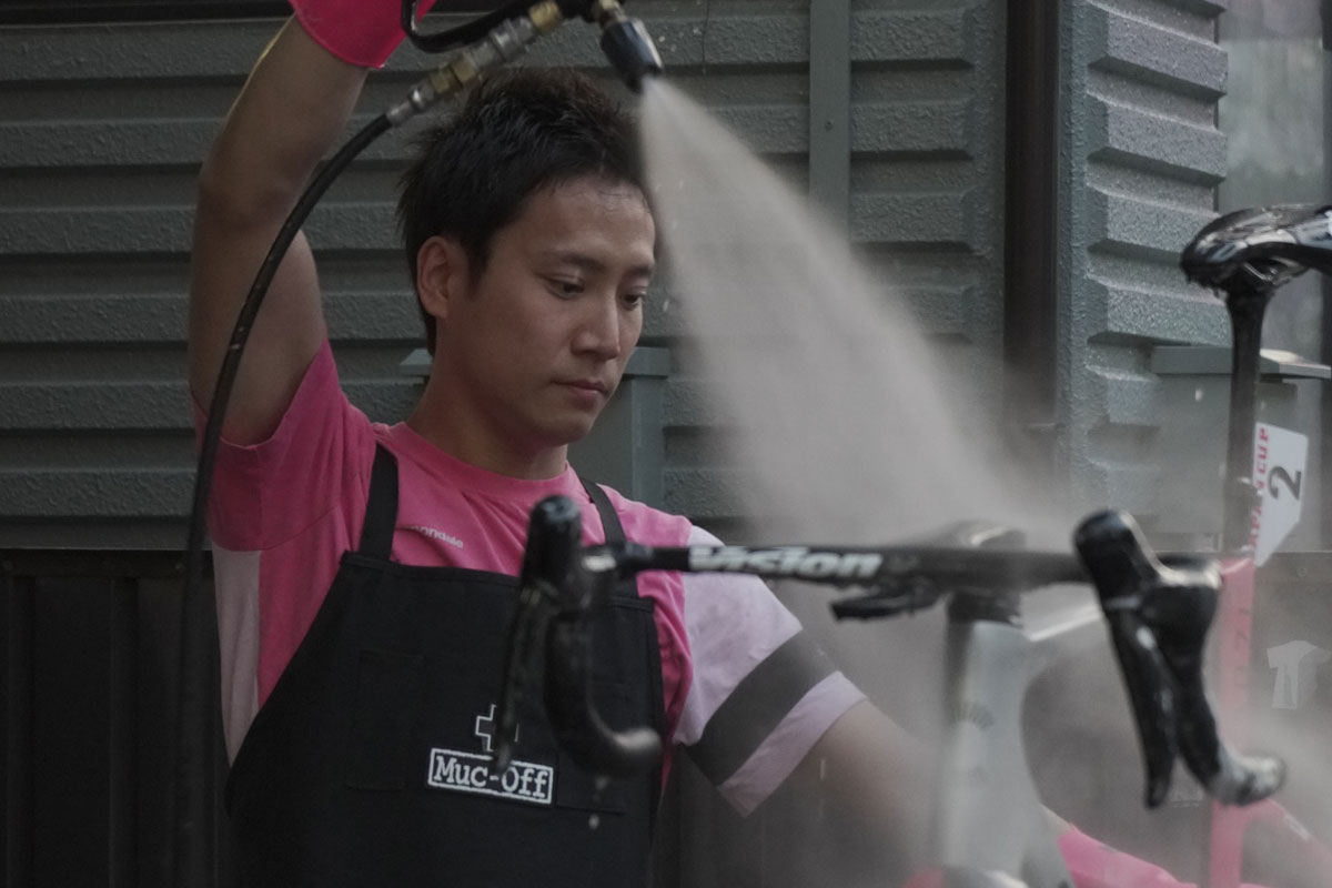 メカニックといえども自転車を触っていればいいだけではなく、他にも仕事がある中での洗車になるため、スピードと効率が重要。