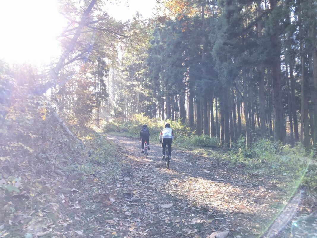 グラベルの下りを座って下る。気持ちの良いダート。お尻が安定する、漕いでいく。