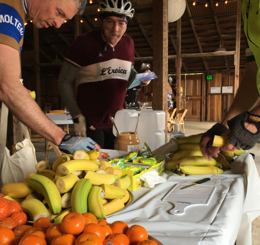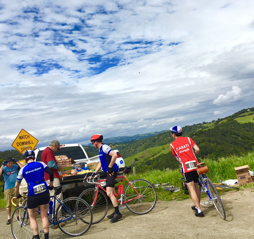 イタリアのエロイカではワインや生ハムなどがいっぱい用意してあり、参加者もワインをたらふく飲んで走るというようなスタイルでした。 今回のアメリカは、コースがタフなこともありある程度休んでは頑張って走るというライダーが多かった気がします。