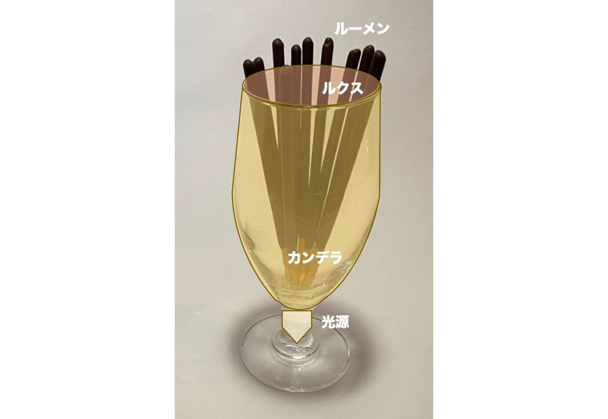 ・角度が狭いと光束の密度が高まり明るいけど周辺がカバーできない。