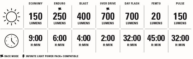 最大700ルーメン/最大45時間&最大500ルーメン/最大80時間