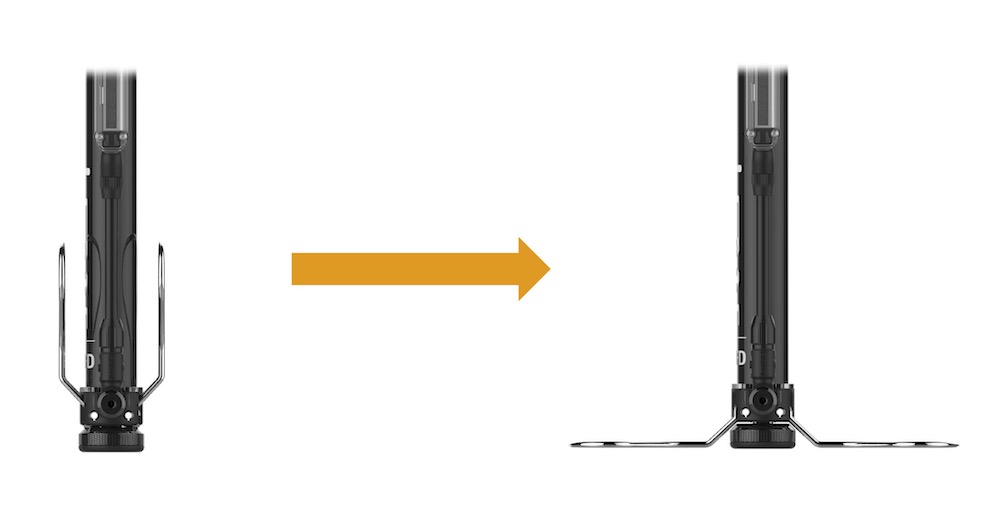 下部のノブを緩めて、スタンドを開いて安定する仕様にトランスフォーム。