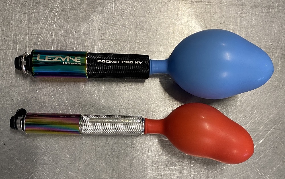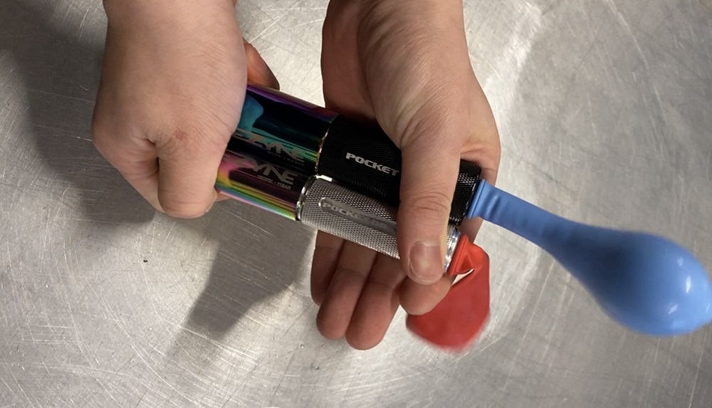 先端に風船を取り付けて、10回ストロークした際どれほどの差が発生するのかを検証しました!