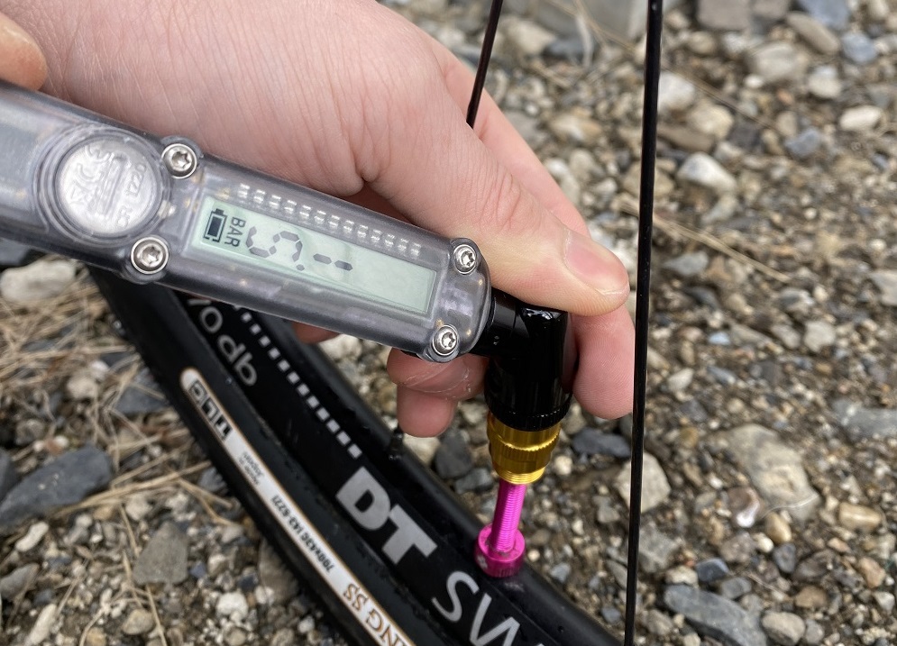 とは言ってもPOCKET DRIVE HVはHVでもMAX6.2BAR(80psi)まで入るので、MTB、グラベルはもちろんのこと、ロードチューブレスタイヤにも問題なく対応します。