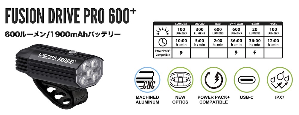 ・速度域20km/h以上のモードは1000ルーメン(1:30)か600ルーメン(3:15)が選べる