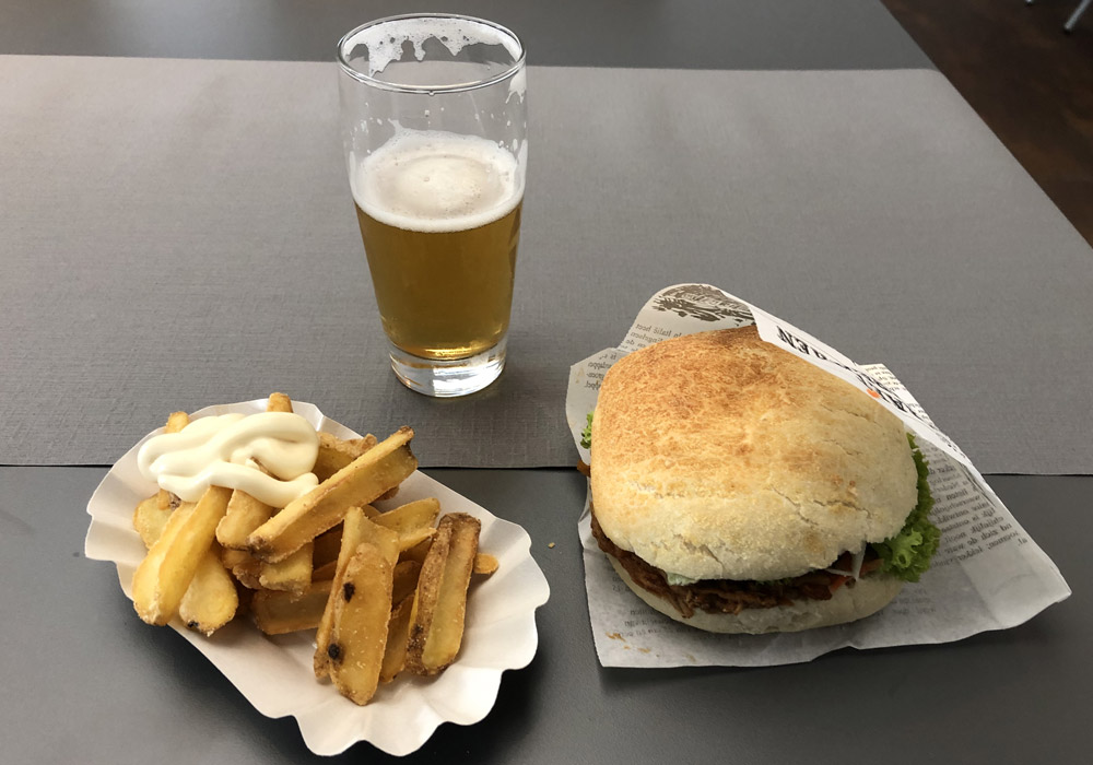 到着すると夕食が用意されており、我慢していたハンバーガーを頬張る….。