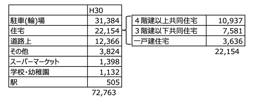 やはり一時的でなく、最も長く、同じ場所に置かれる環境下での盗難が最多となっております。