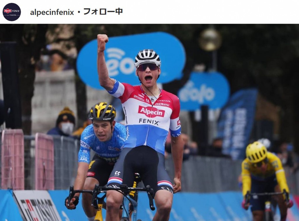 ハンガーノックになりながらもペダルを踏み続け、追走してきたポガチャルを振り切り豪快な勝利をあげています。