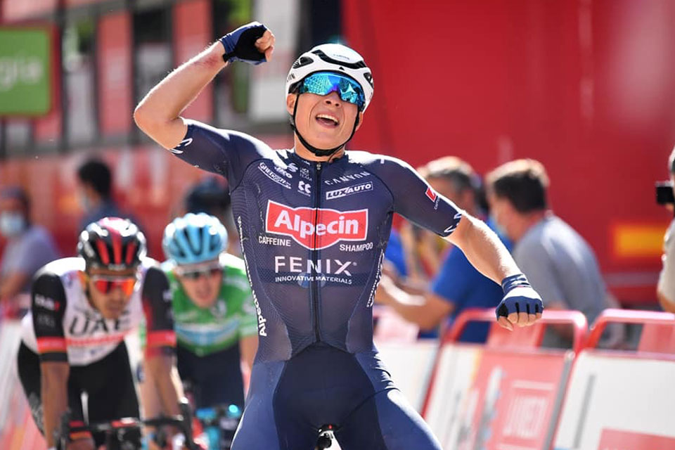 最初のロードレースとなる166kmの第2ステージ、ゴール前のスプリント勝負、主導権を握ったアルペシン・フェニックスのヤスパー・フィリプセンが超高速バトルを制し、初のグランツールステージ優勝を飾りました。