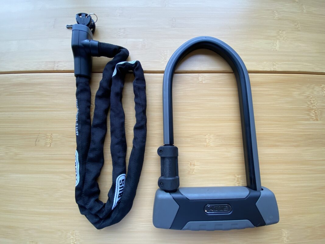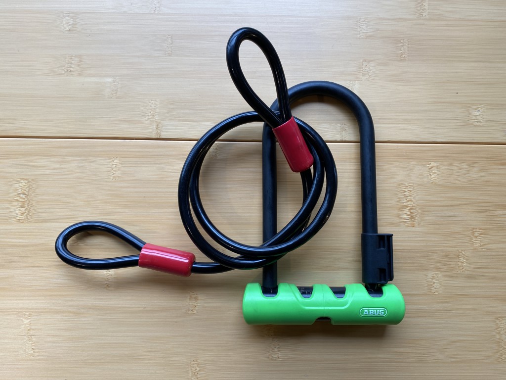 U字ロックで本体を施錠し、付属のCobra(ケーブル)で前後輪をカバーするような方法です。