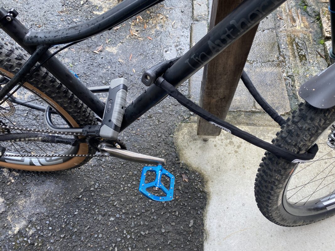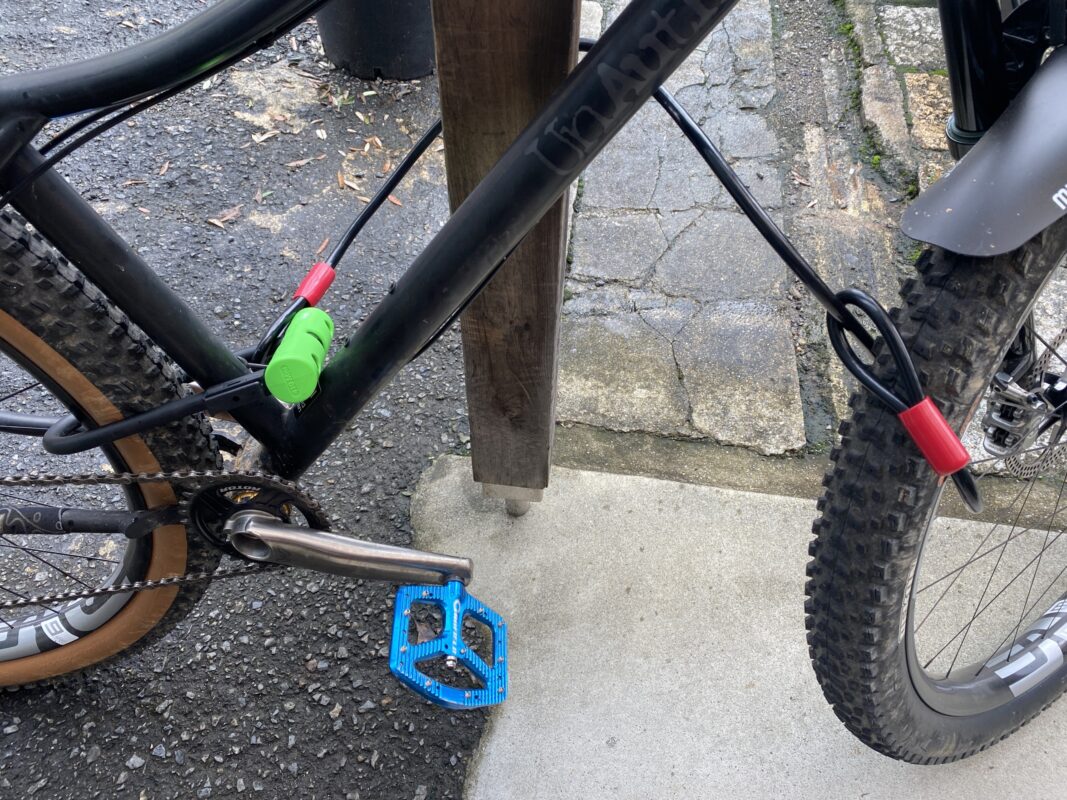 フレームと後輪を地球ロックし、前輪とフレームを地球ロックすることで、2ロックができます。