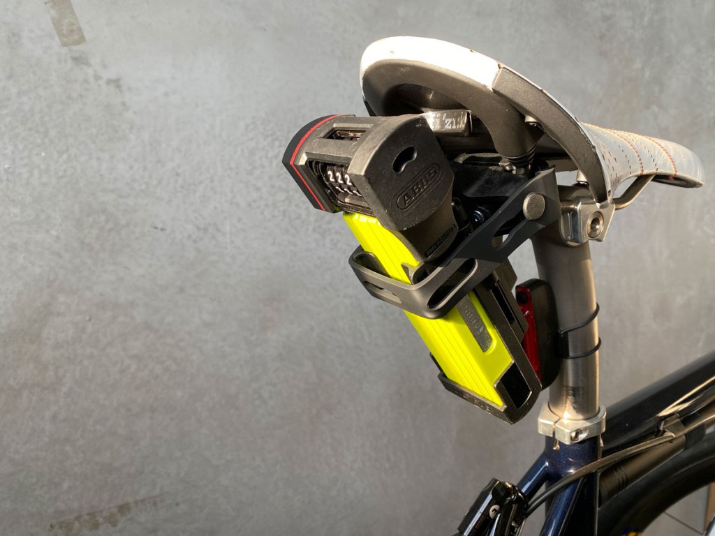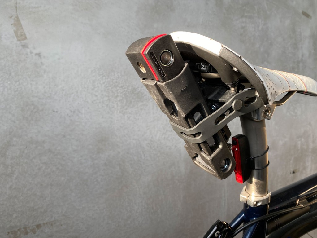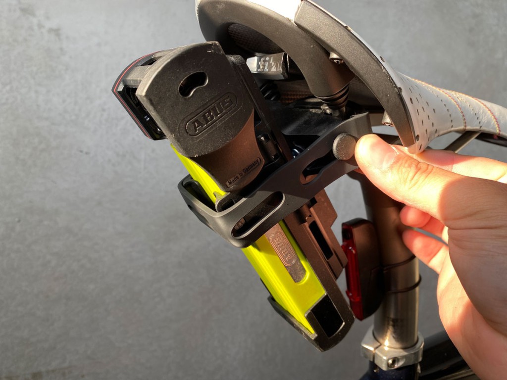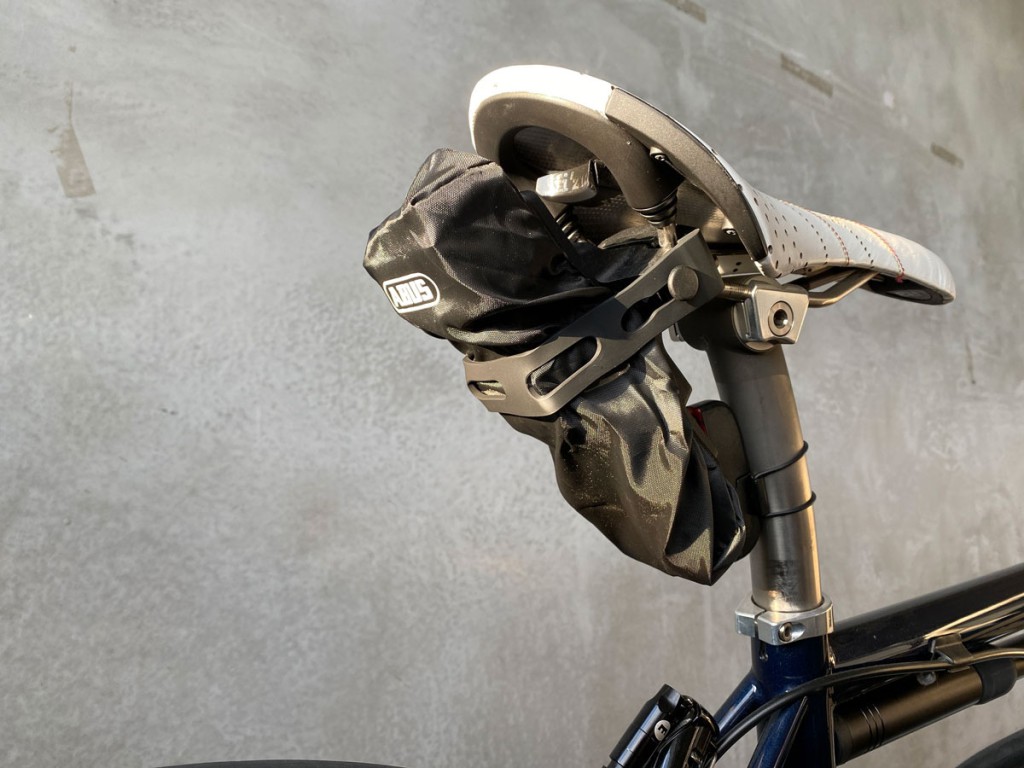 結果、サドル下にバンドで固定する方法が一番コンパクトに取り付けられるという結果になりました。