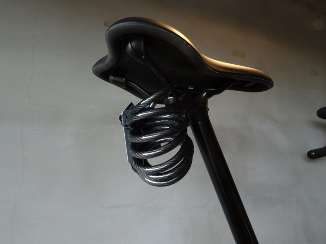 ケーブルロックは専用マウントを使わなくてもサドルレールやハンドルに引っ掛けるだけでOK。