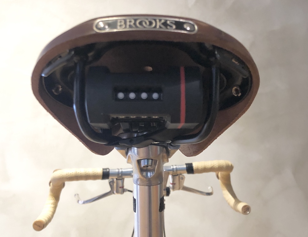 BROOKSはサドルトップや、レールの形状から内側に隙間が多く、実はいろいろ収納しやすいのです。