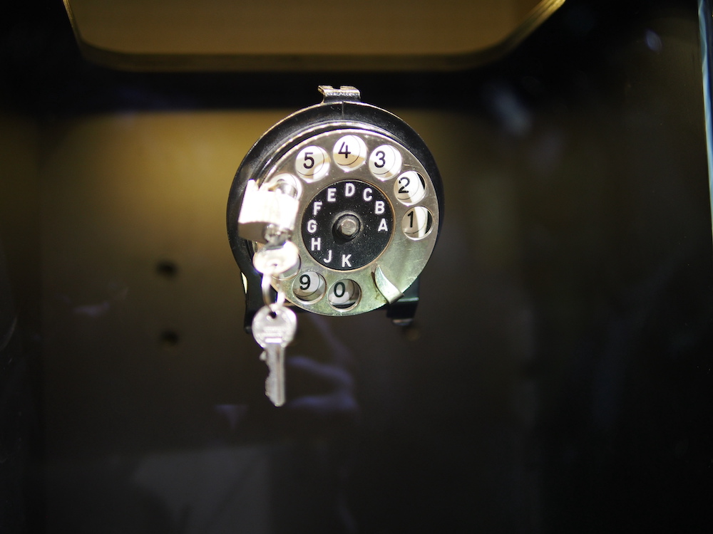 電話通信ががまだ高額だった時代には、勝手に電話されないようにこんなカギもあったよう。