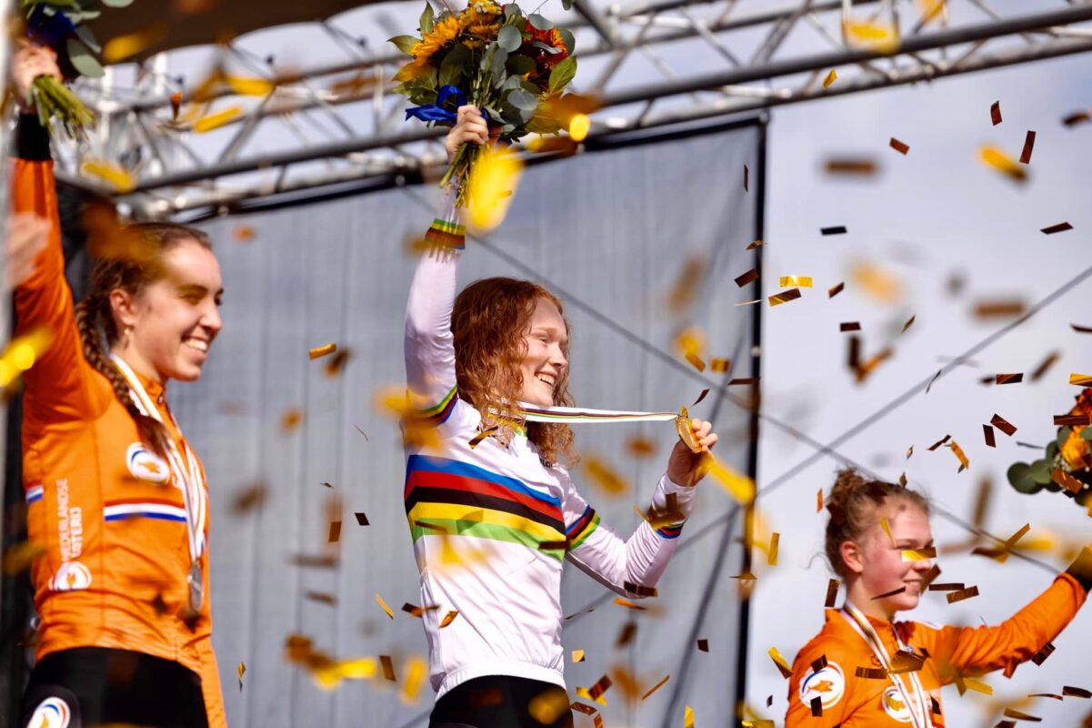 女子U23では、オランダチームの3名がレースを支配。パック・ピーテルスがゴールスプリントでシリン・ファンアンローイを僅差で破って初のアルカンシェル獲得となりました。
