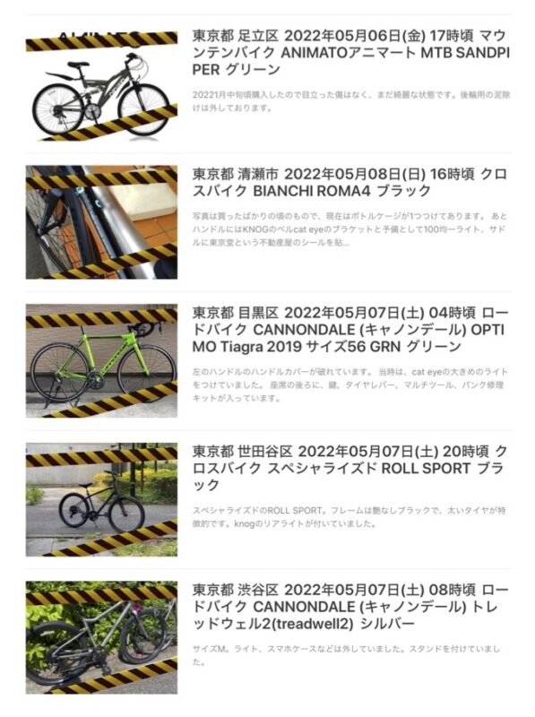日本全国の自転車の盗難に関する情報を集め、正しい防犯知識や、盗難に遭いやすいところなどを紹介する盗難情報サイト
