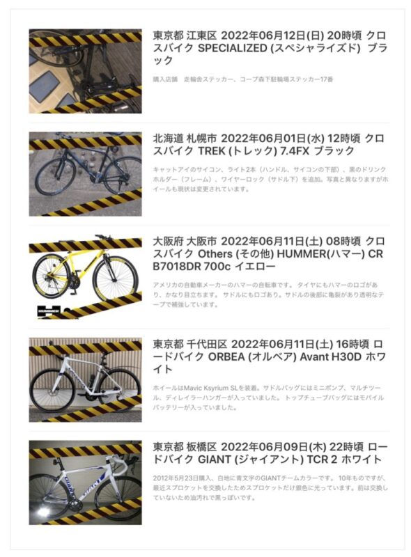 日本全国の自転車の盗難に関する情報を集め、正しい防犯知識や、盗難に遭いやすいところなどを紹介する盗難情報サイト