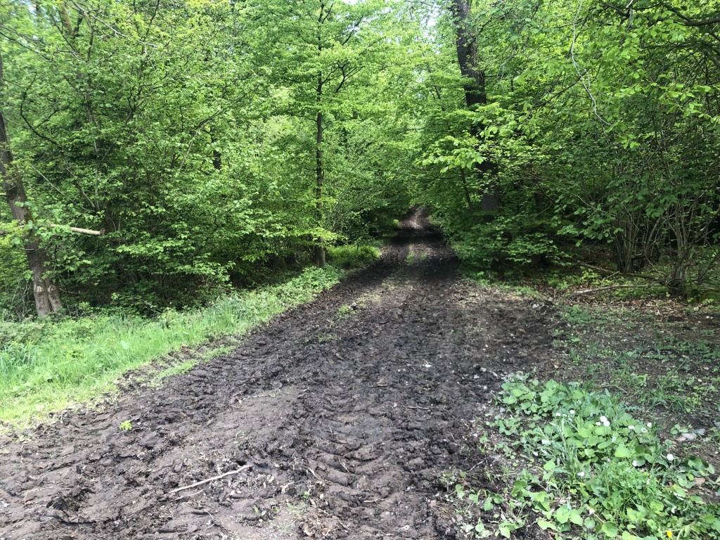 緩やかな登りという表記を信じて進んでいくと、次第に舗装路からぬかるんだグラベルに。