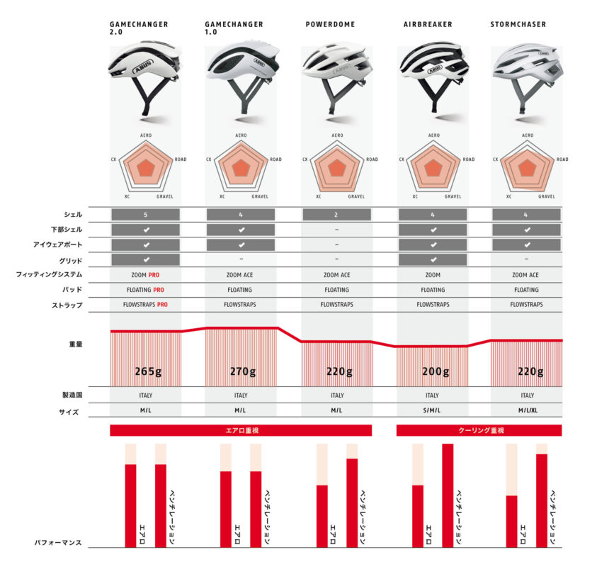 そんな兄弟関係の、POWERDOMEは、イタリア製、エアロ性能というところは維持しつつ、クーリング性能を上げて、肉抜きを増やし30g軽くしたモデルになります。