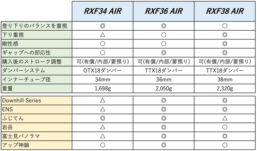 これは、フォーク径がスリムなRXF36Airに、プラス200g少々の重量。