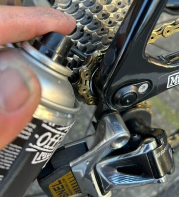 これを怠るとプーリーの回転がとまり、最悪な場合はそのままリアメカが折れてしまうためそうならないよう注意しています。