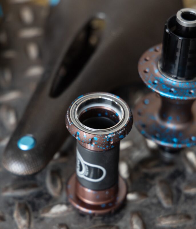 クリスキングはこのコレクションを「スプラッシュ」と名付け、アルマイト処理のエキスパートとして、フリーハブ、ヘッドセット、ボトムブラケットなどを斬新な色づかいに仕上げる展開に。