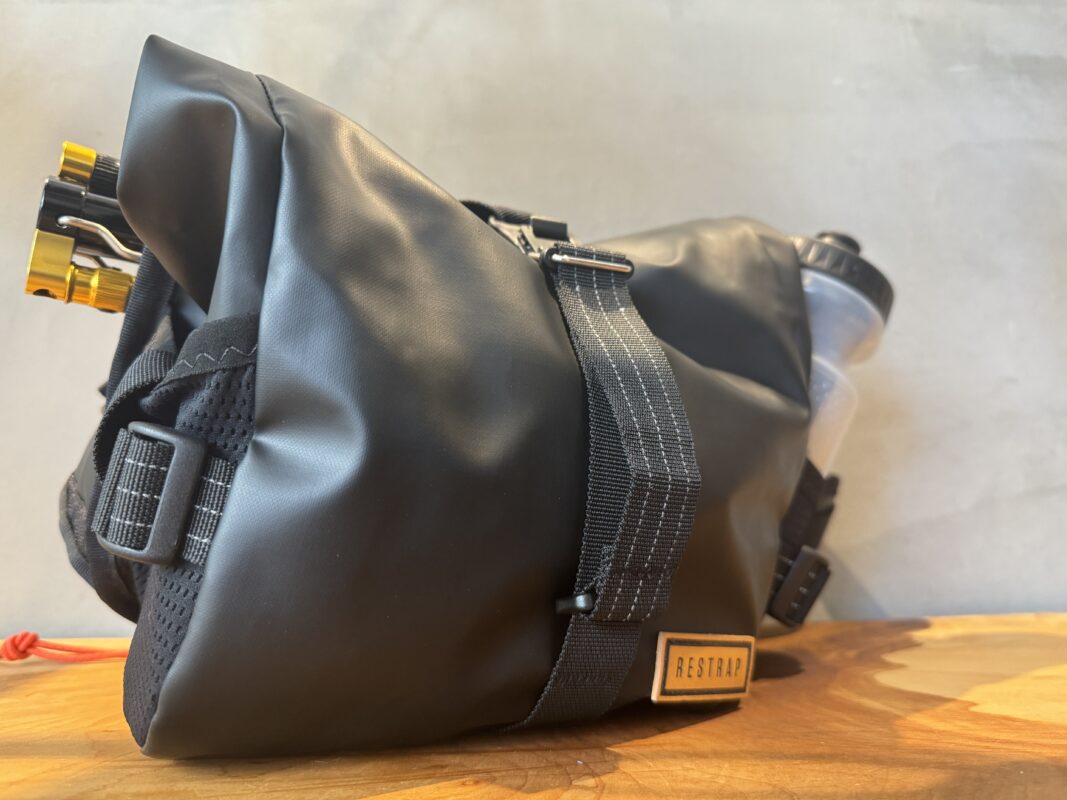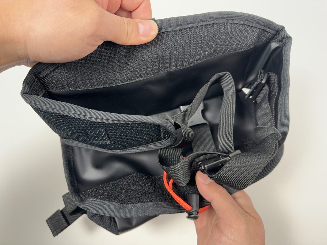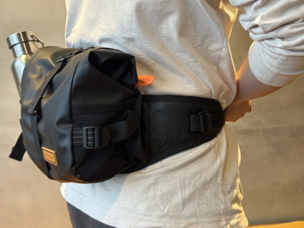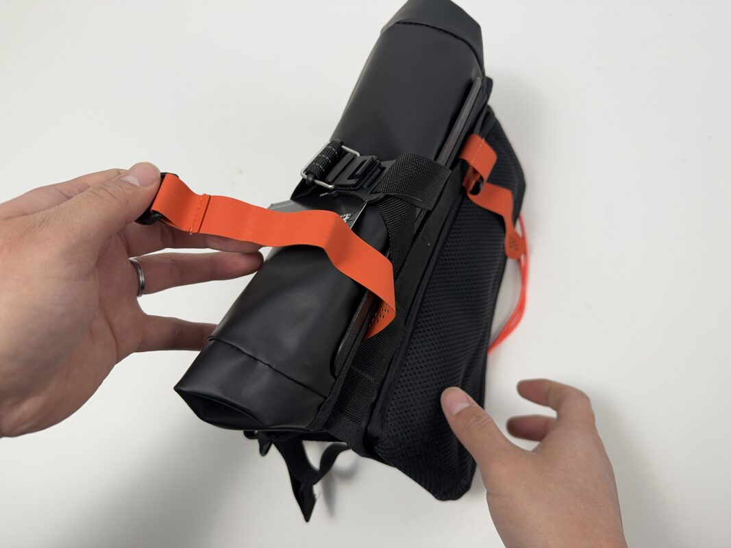 あとはヘッドチューブ固定のストラップを内側にしまえば、すぐにヒップバッグに変わります!