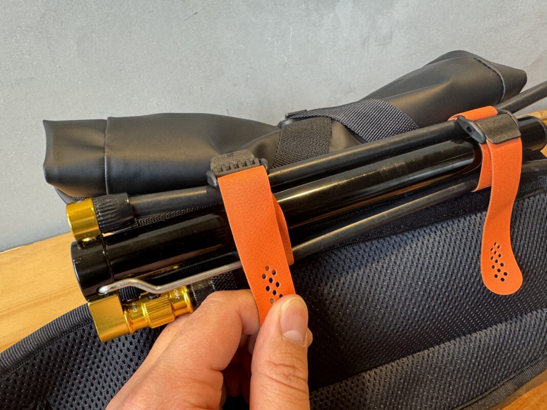 例えばMICRO FLOOR DRIVEなどのカバンには入り切らないサイズの長物を固定する事ができます。