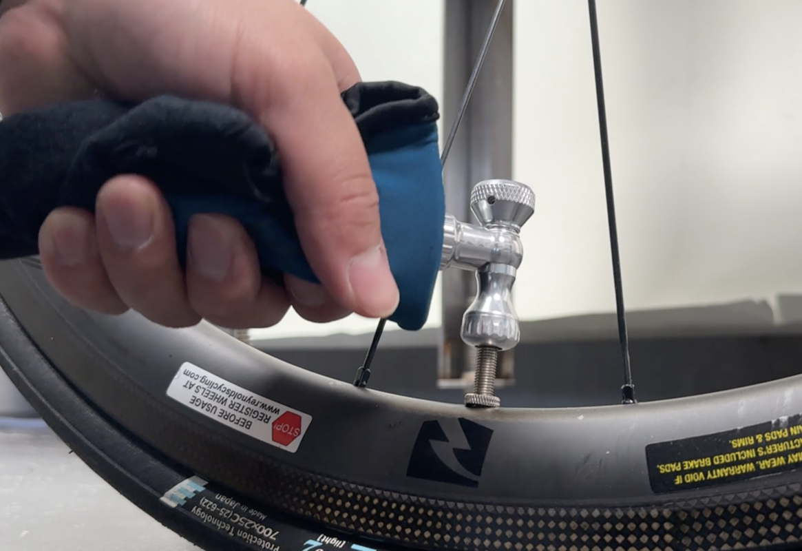 ・1気圧未満くらい(手でタイヤをつかんでプニプニするくらい)まで入ったら再度、チューブが噛み込んでないかチェック。