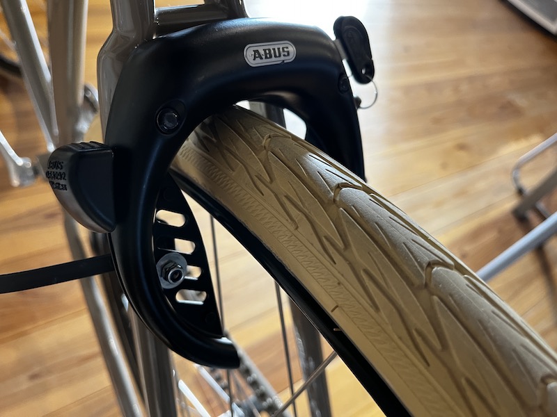 馬蹄錠、フレームロックと言われる自転車にマウントされた鍵。