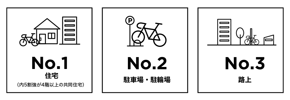 統計からは、集合住宅で、かつ4階以上の場合が最も盗られる場所に。