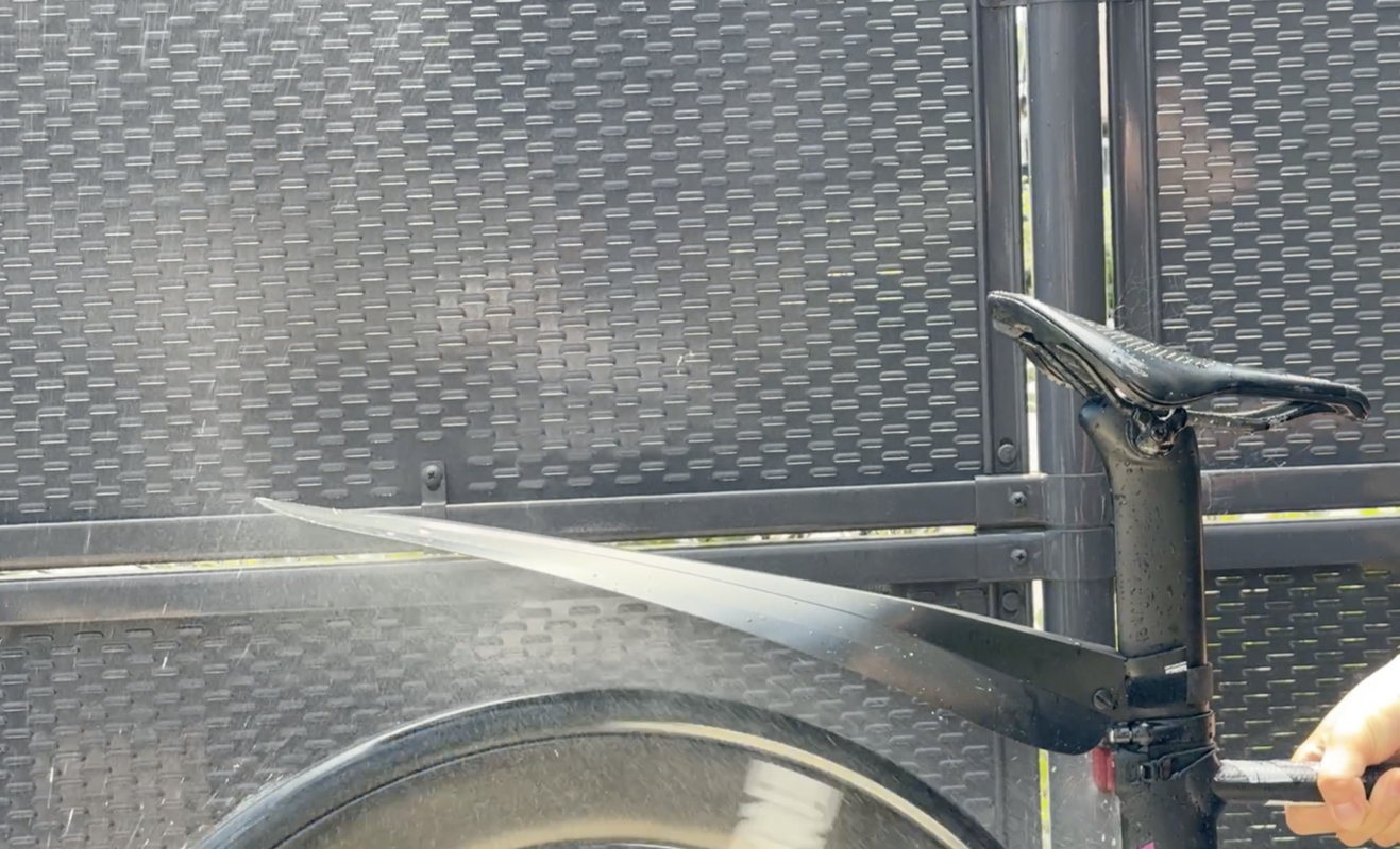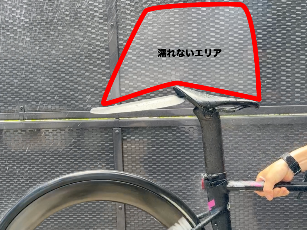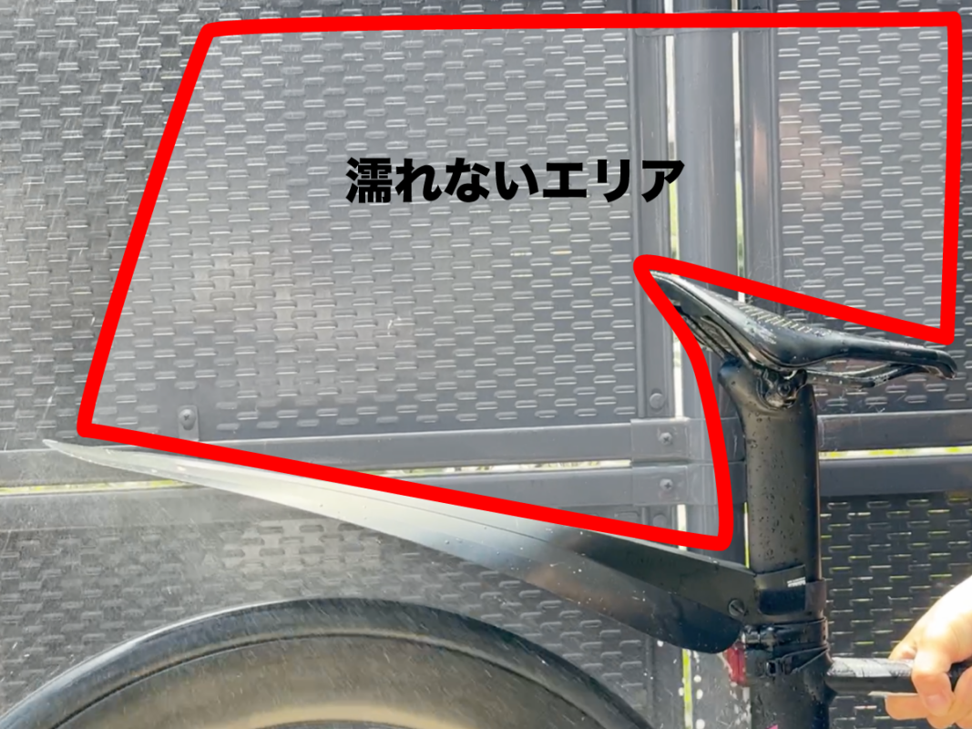 それに対してREAR FENDERは背中へ向か水をほぼ100%水を防いでいます。
