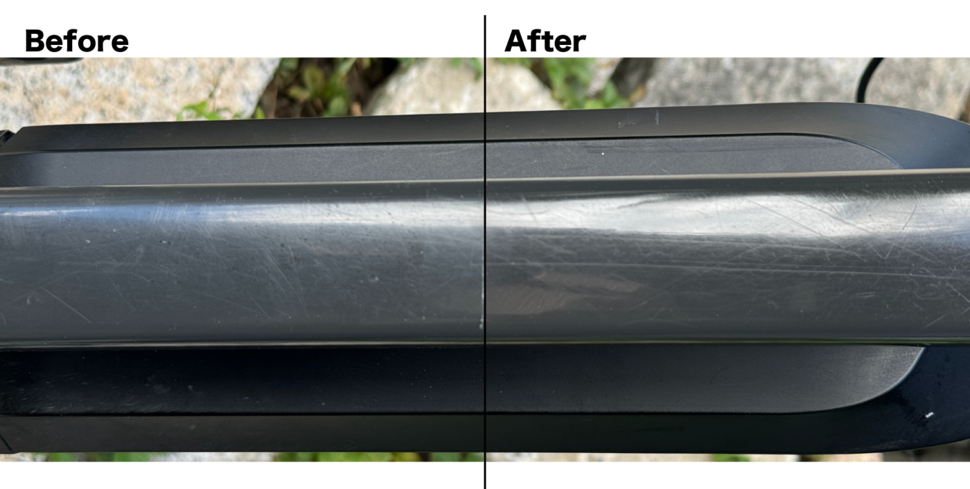 施工することで、フレームに付いてしまった小キズを消して、新品以上の輝きが出るアイテムです。