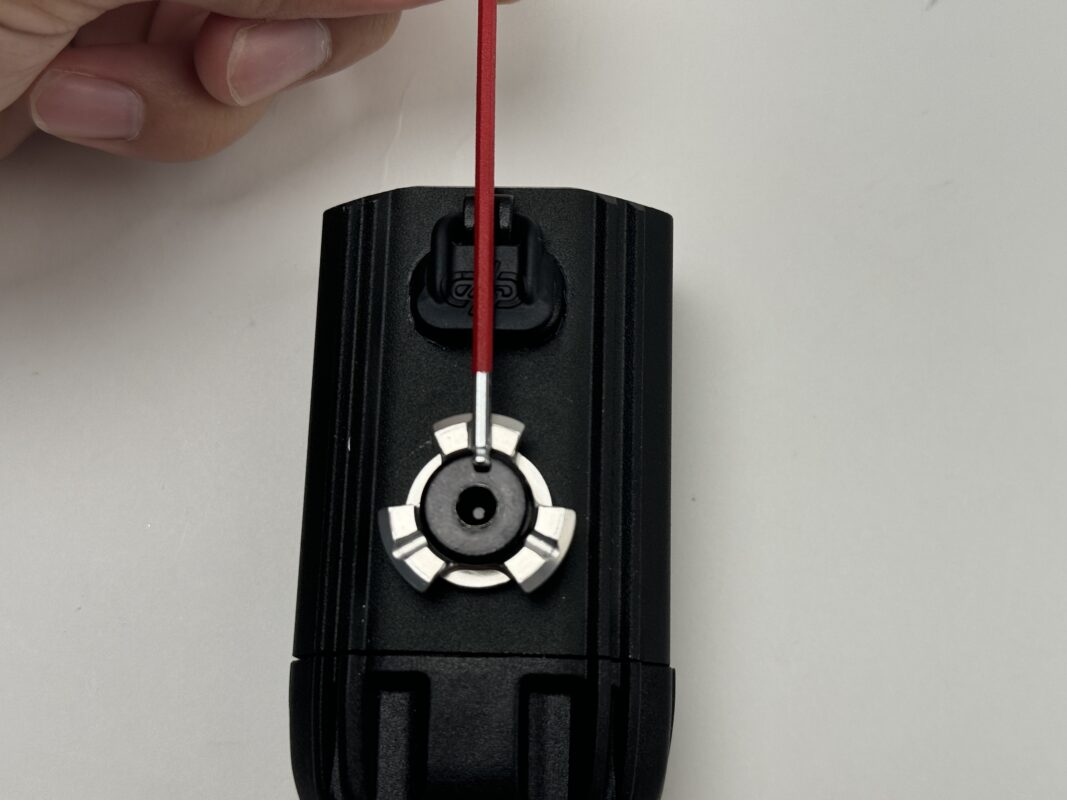 充電キャップの中心に溝が切られており、このように1.5mmの六角レンチをのせて合わせると、