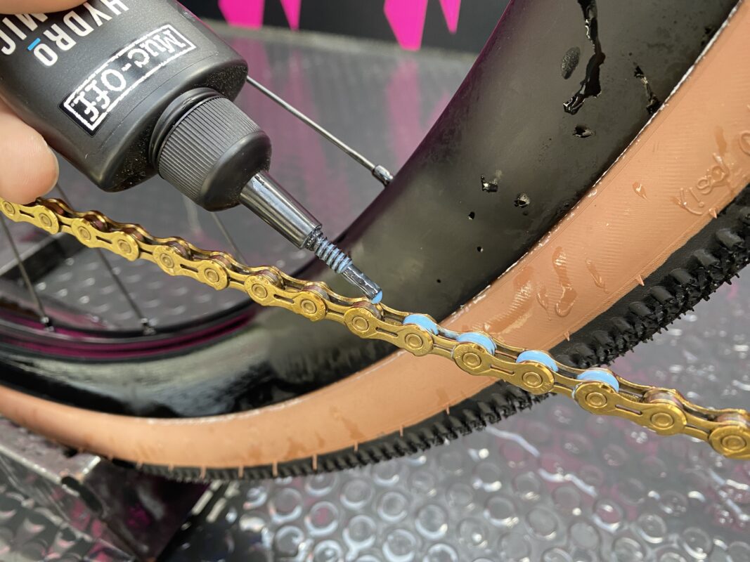水置換性のオイルが揮発した後は、しっかりルブがチェーンに定着する
