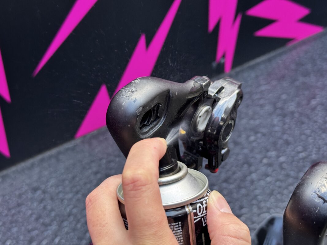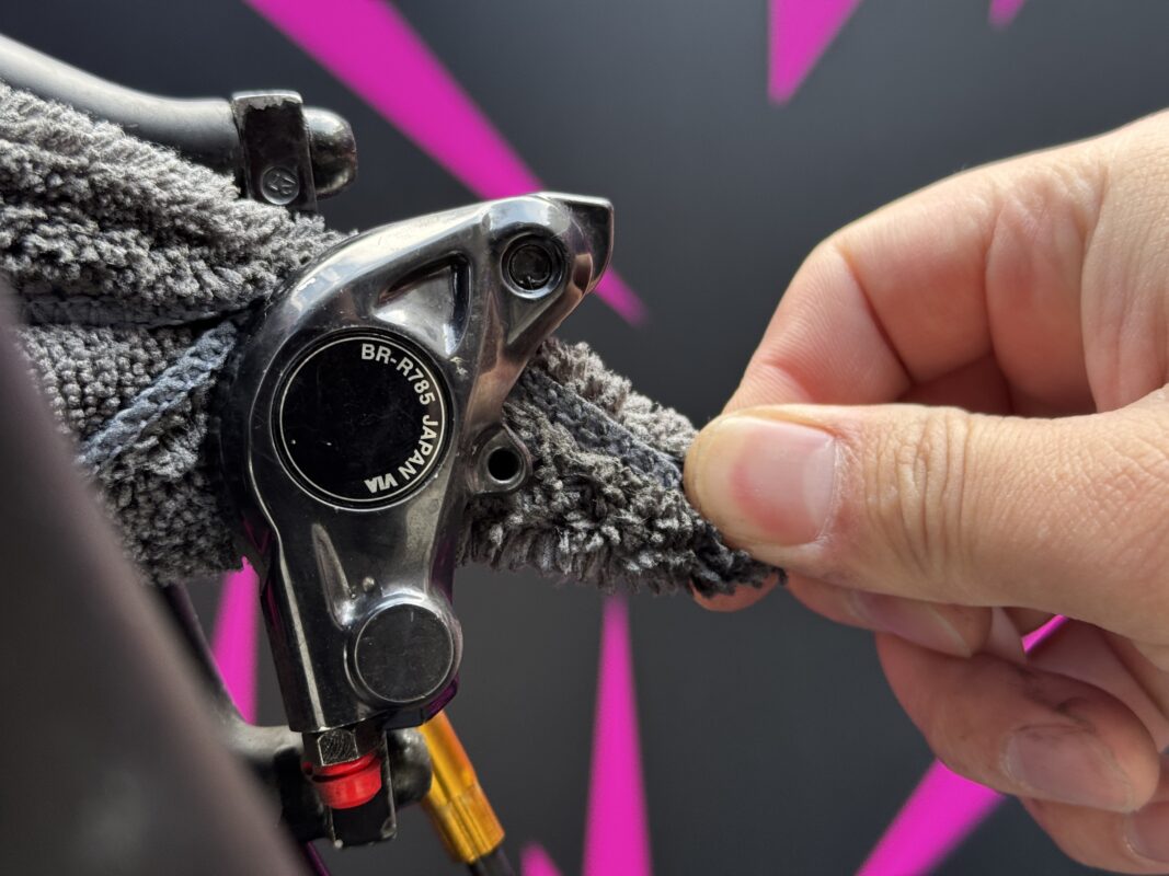 「パッドが滑るような感覚がある」というときや、ブレーキダストがこびりついている場合は、パッドを外してしっかり洗浄しましょう。