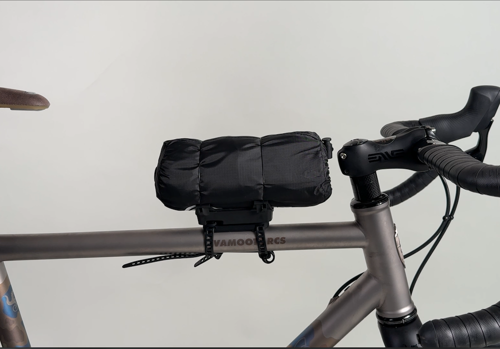 そこでTWIST UNI BASE & UNI CONNECTORでレインジャケットをトップチューブに固定!
