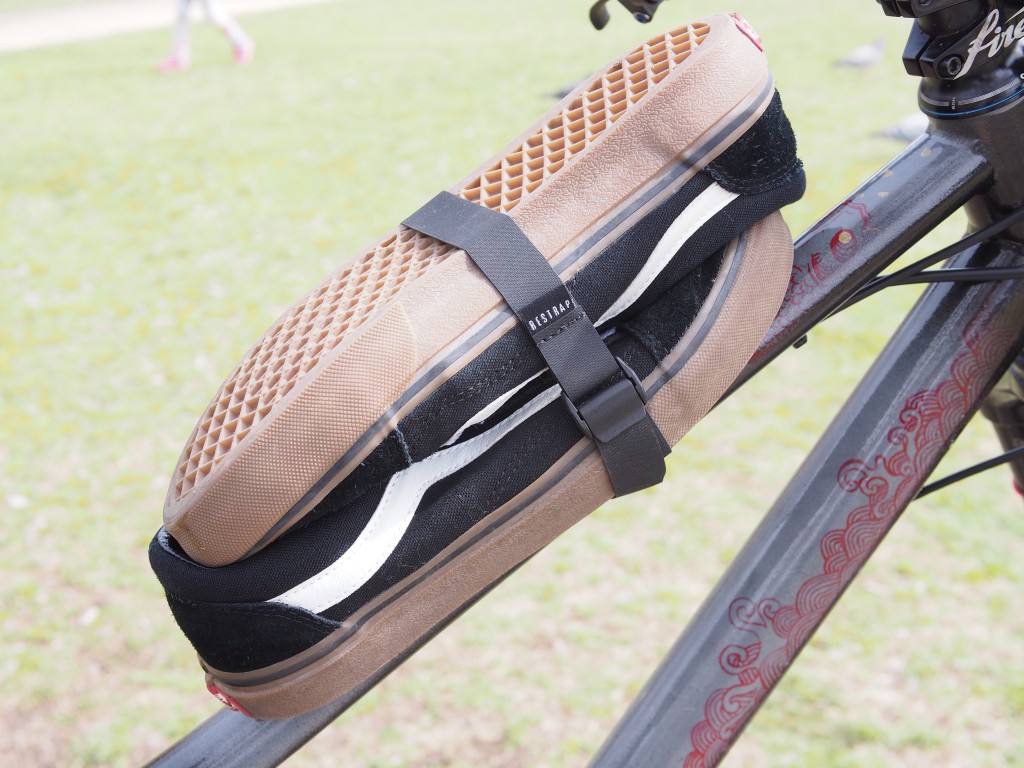 パンが潰れないようにゆるく縛っても、走行時にズレ落ちませんでした!