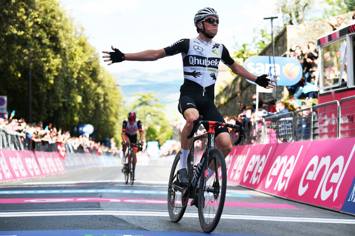 コースは、トスカーナ地方の丘陵地帯の162km。未舗装区間が4箇所用意されてた難易度の高いコースで、スタート直後に逃げグループに入ったシュミットは、マウンテンバイクやシクロクロスをバックボーンに持つプロ1年目の若手選手。トラックでもオリンピック代表に選ばれるオールラウンダー。