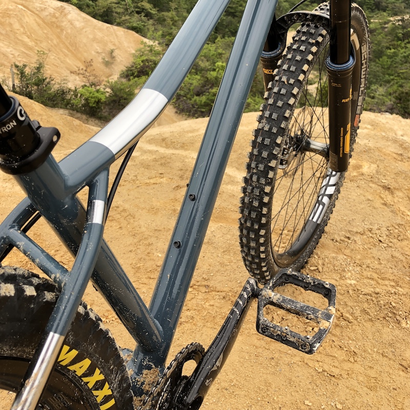 しなやかな横剛性で、コーナー中の荒いウォッシュボードギャップや木の根もフレームがしっかりと吸収してくれて、安定感抜群。