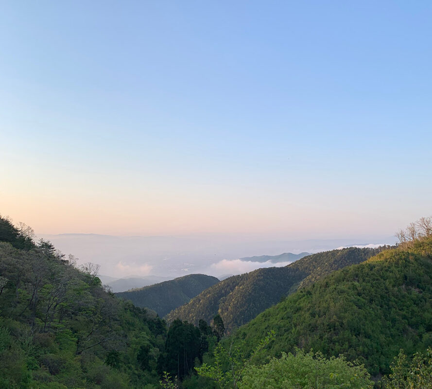 夜景がきれいだったところに行ってみると、雲が下にあり、朝らしく気持ちのよい景色だ。