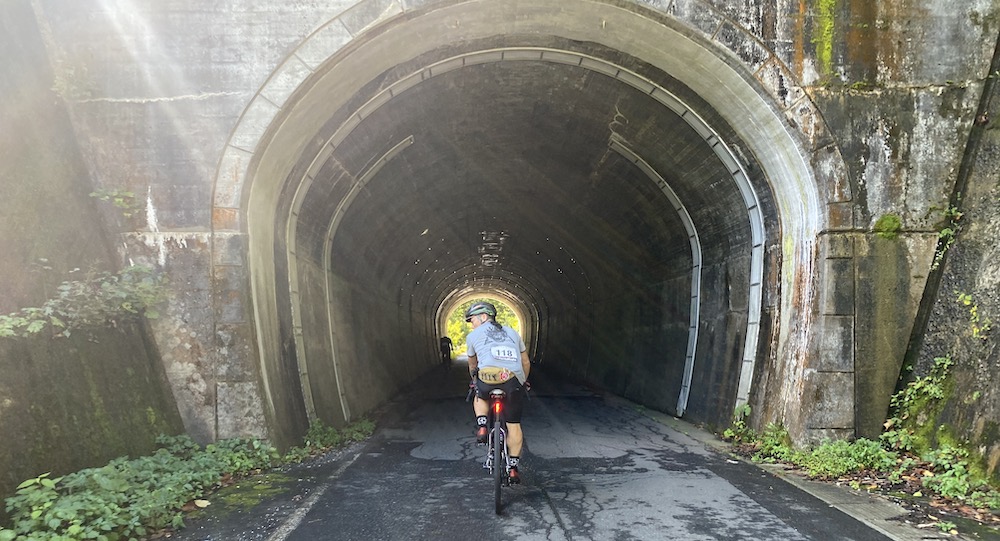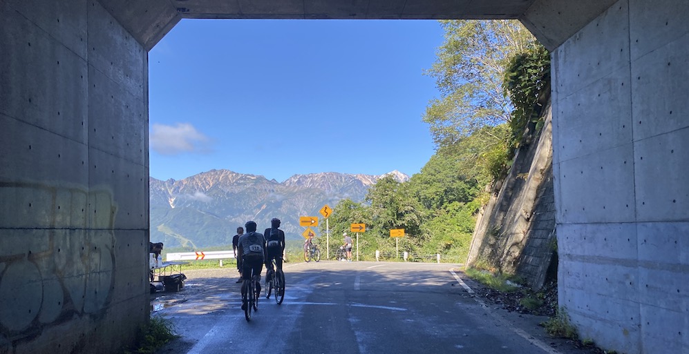 時速10km/h未満で登っていると、おそらく30分後(いや1時間後かも)にスタートを切ったライダー達が登りとは思えないスピードと笑顔で横をパッシングしていく。