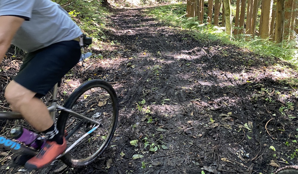 先に進む、最後のチェックポイントまでグラベルの下りをかっ飛ばしながらも途中止まり、