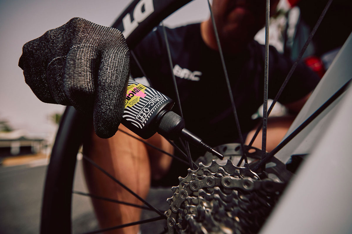 バイクのメンテナンスにはMUC-OFFを使用。トライアスロンでもその実力を証明した。
