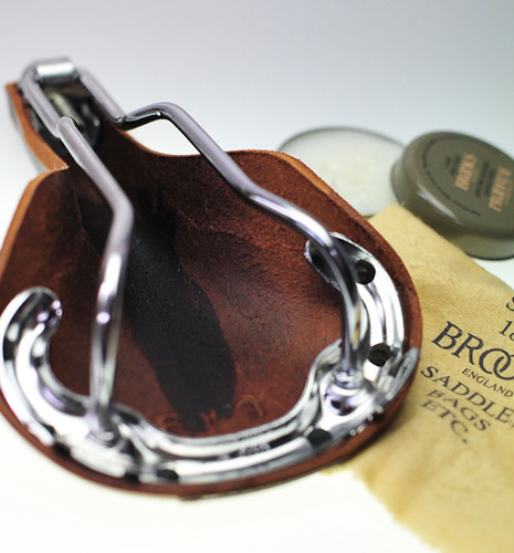 皆さんが思っているほど、デリケートな物でもありませんし、 日常的に使用しても全く問題ない、サドルなのです。 確かに、プラスチックベースで合成皮革を使用したメンテナンスが必要ない通常のサドルに 比べたら、BROOKSはほんのちょっと気を使ったり、面倒に感じるかもしれません。