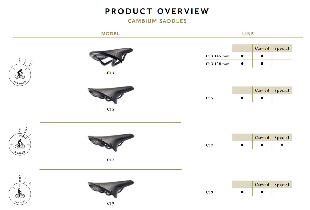 60°の前傾(画像中アイコン)で乗るツーリングやコミューター、マウンテンバイクなどは「C17」